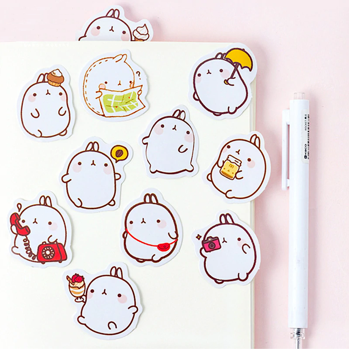 These cute decorative paper stickers feature cute Korean Molang rabbit. Decorate your diaries. planners. scrapbooks or bullet journals with them.