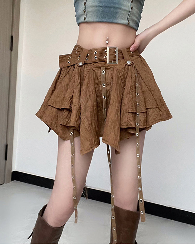 Details: Mini skirt with belts and front buckle design