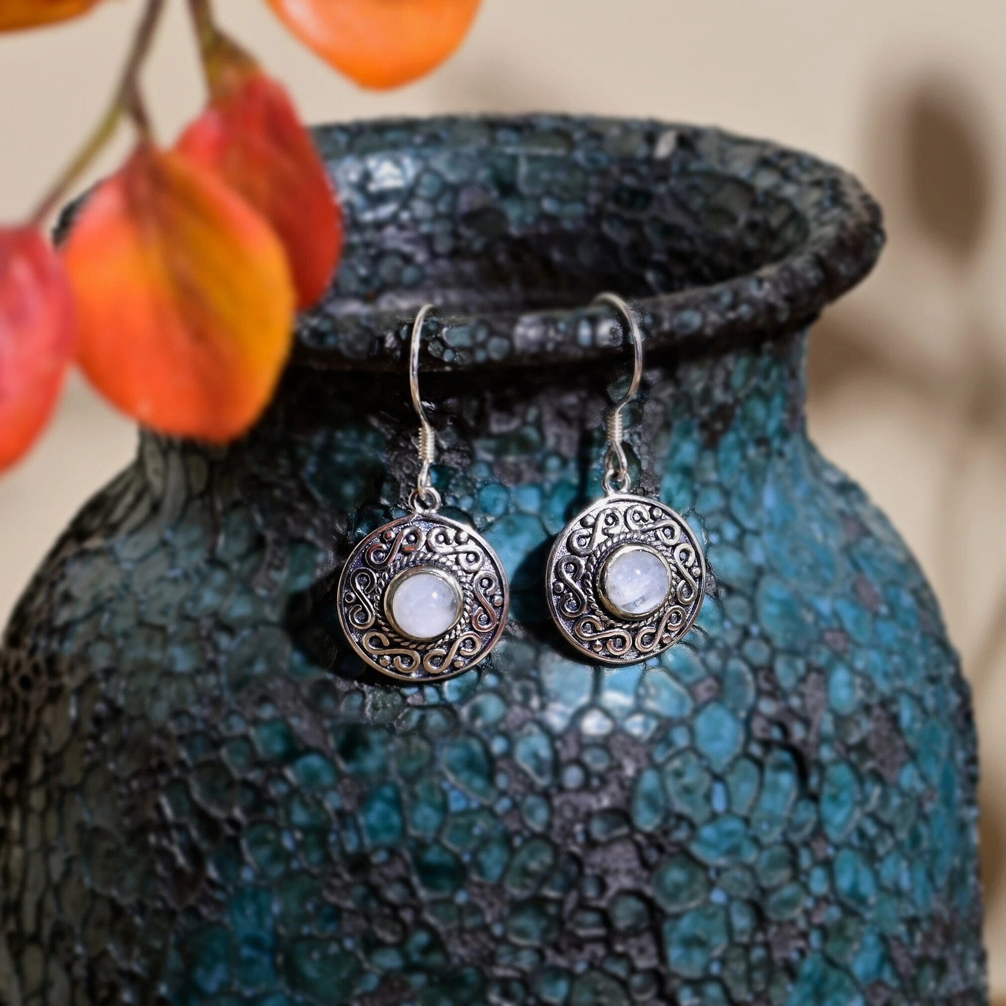 Enhance your everyday look with our exquisite Moonstone Drop Earrings. These earrings boast a mesmerizing engraved design. adding a touch of delicacy and ensuring you stand out in any crowd.