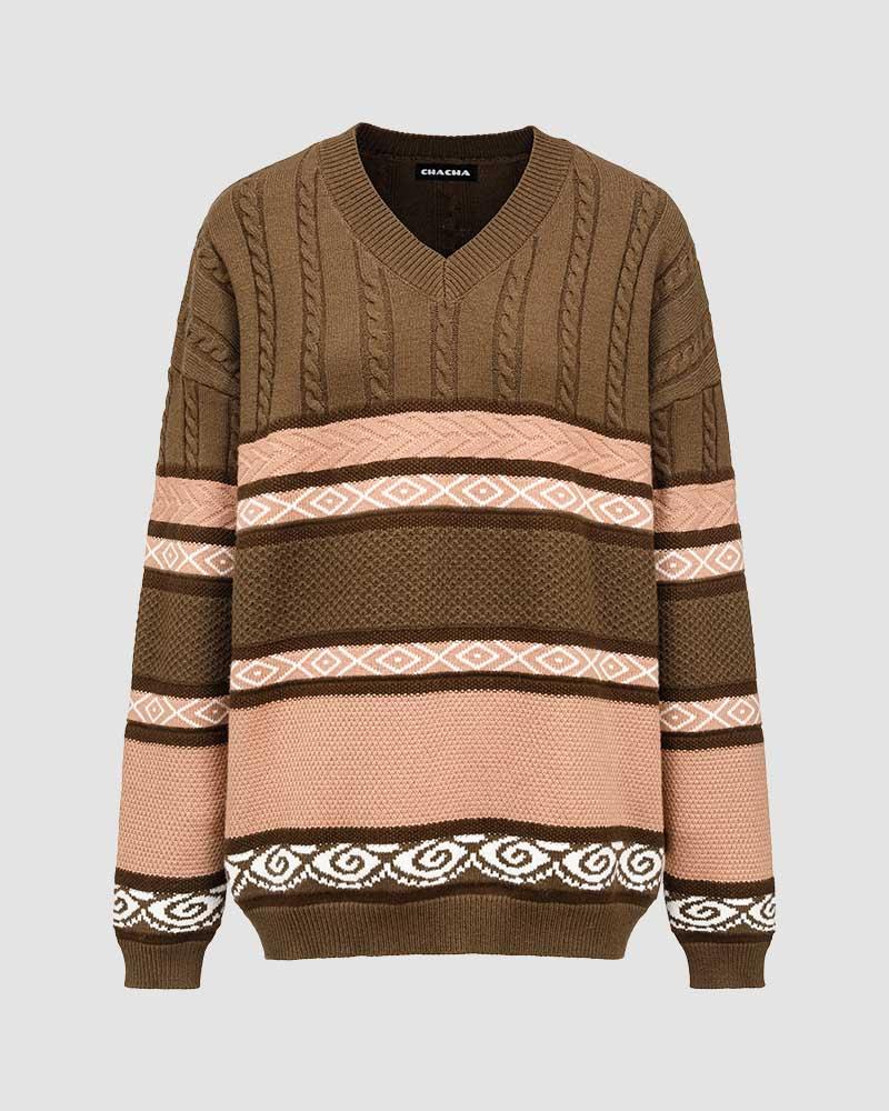 Details: Long-sleeve sweater with cable design and stripes pattern