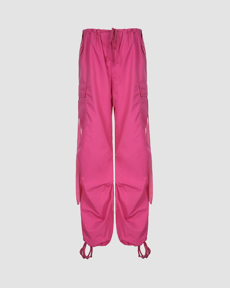 Details: Straight leg cargo pants withdrawstring and side pockets design
