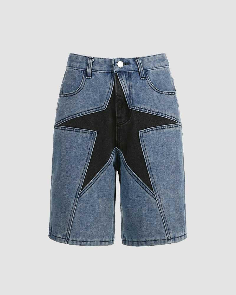 Details: Denim shorts with star design