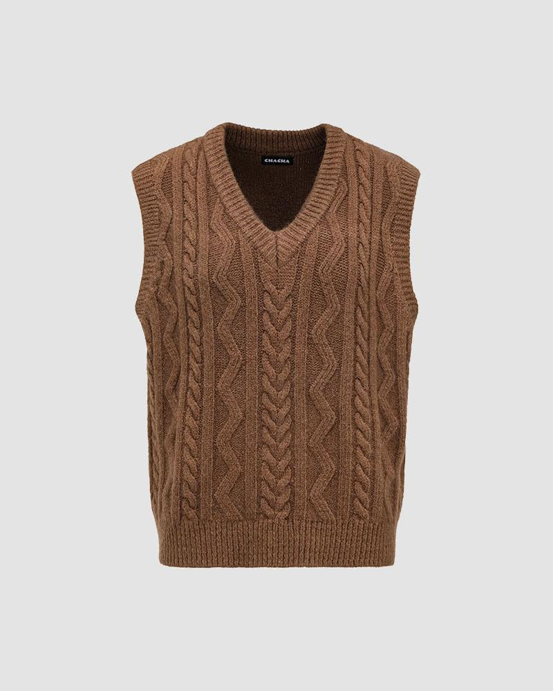Details: Knitted vest with cable pattern design