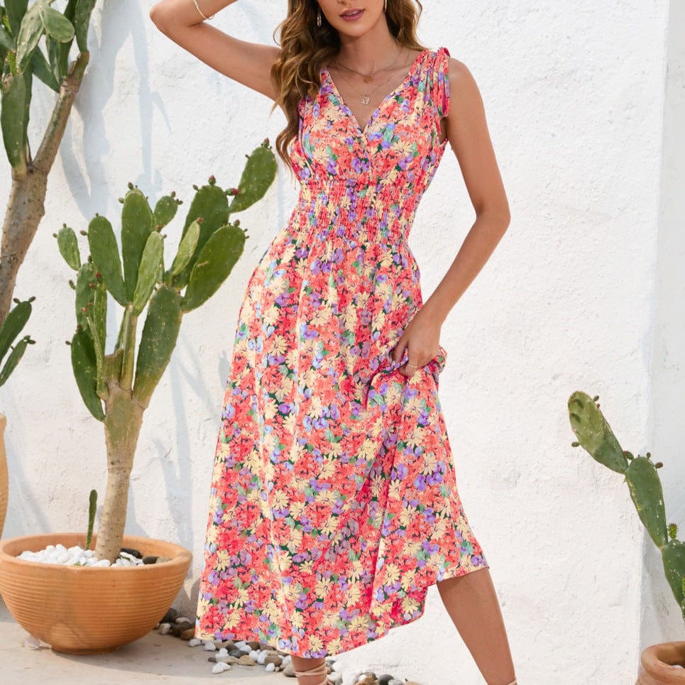 This Orchid Boho Maxi Dress is the perfect pick when you want to bring a flirty. floral flair to your look. Have fun in the sun with its elasticized waistline and ruched details. while the neckline's V-neck and hanging ties sleeves make sure you have the style that will get the party started! Who even needs a green thumb to rock this floral dress?