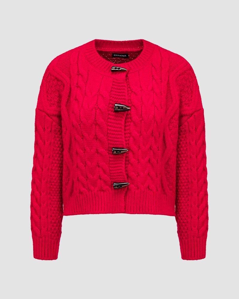 Details: Long-sleeve cardigan with cable design and wooden button design