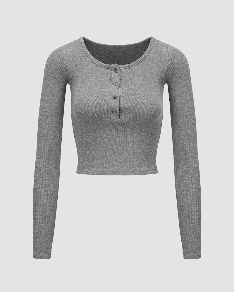 Details: Long-sleeve crop top with front button design