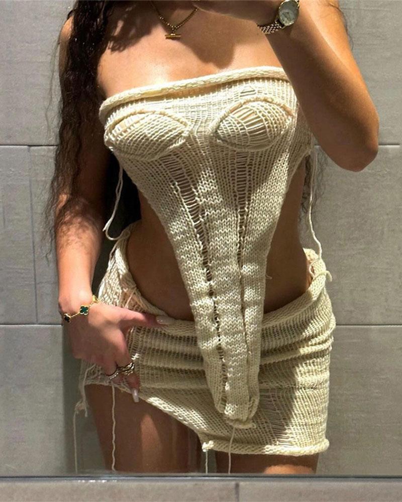 Details: Crochet coord set. coming with tube top and short skirt