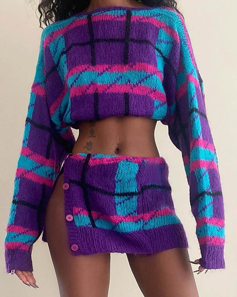 Details: Coord set with plaid pattern design. coming with sweater top and mini skirt