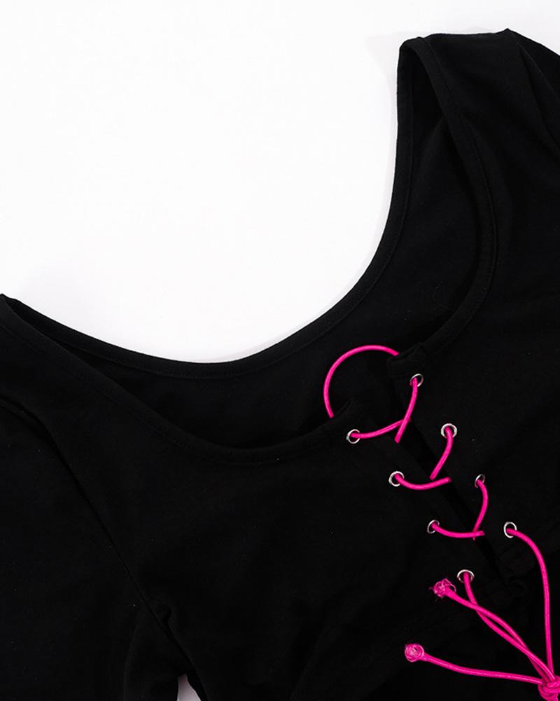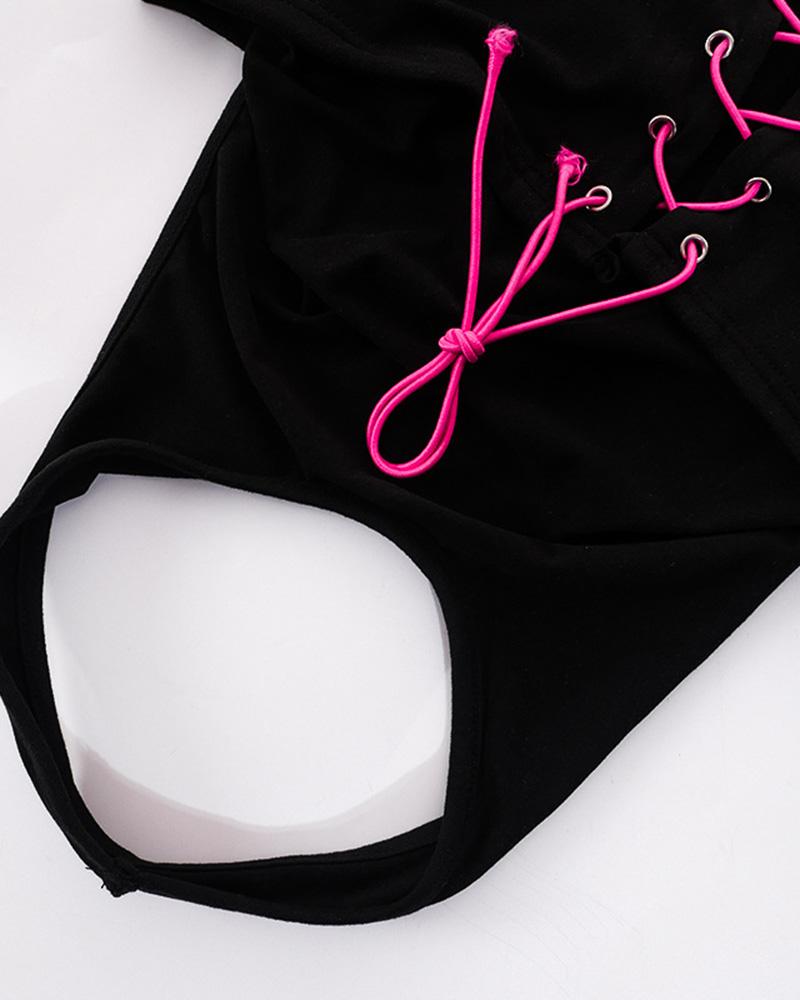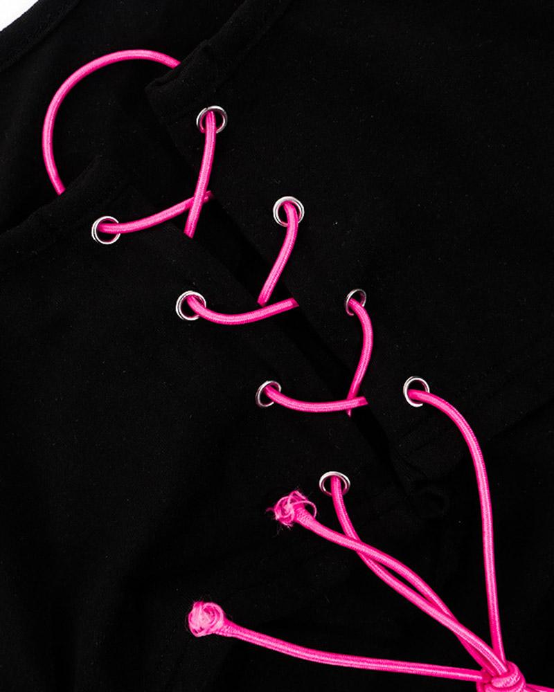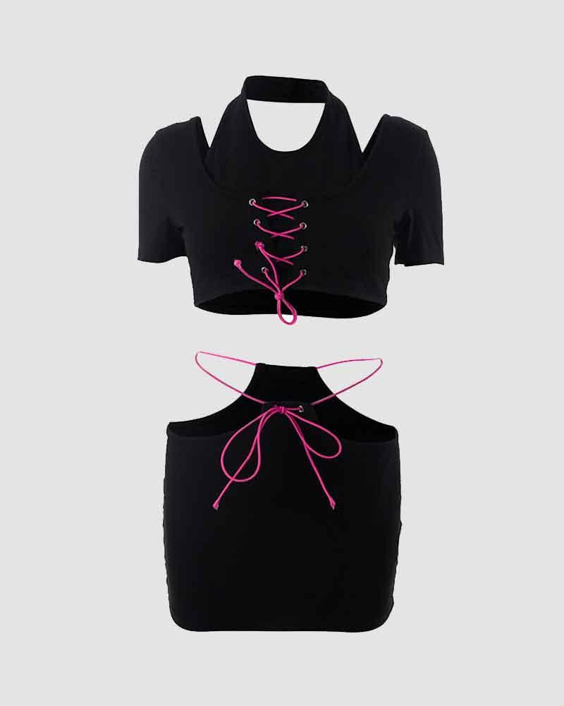 Details: Coord set with pink shoelace design. coming with cropped top and short skirt