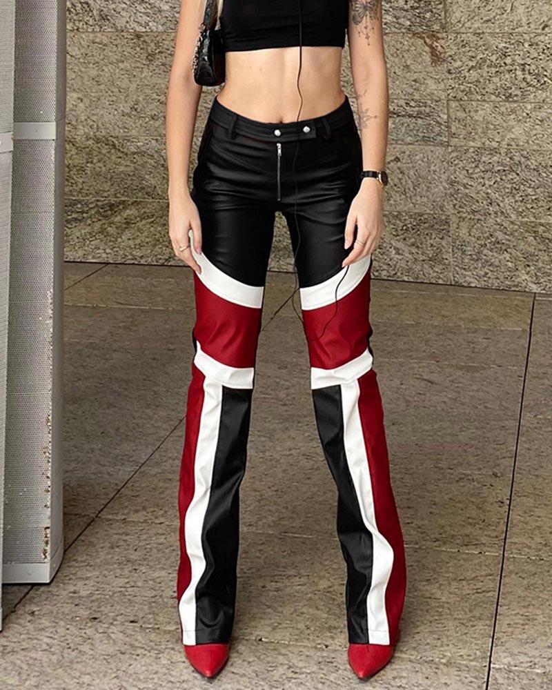 Details: Long PU pants with red stripes design