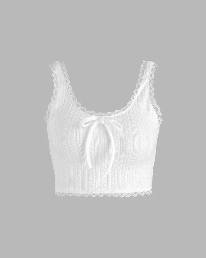 Details: Lace cropped top with tie front design