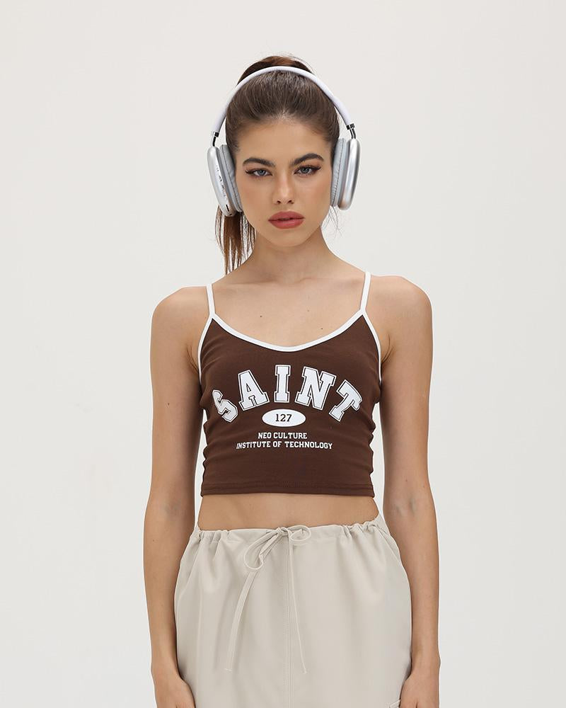 Details:Cami top with "Saint" letter print