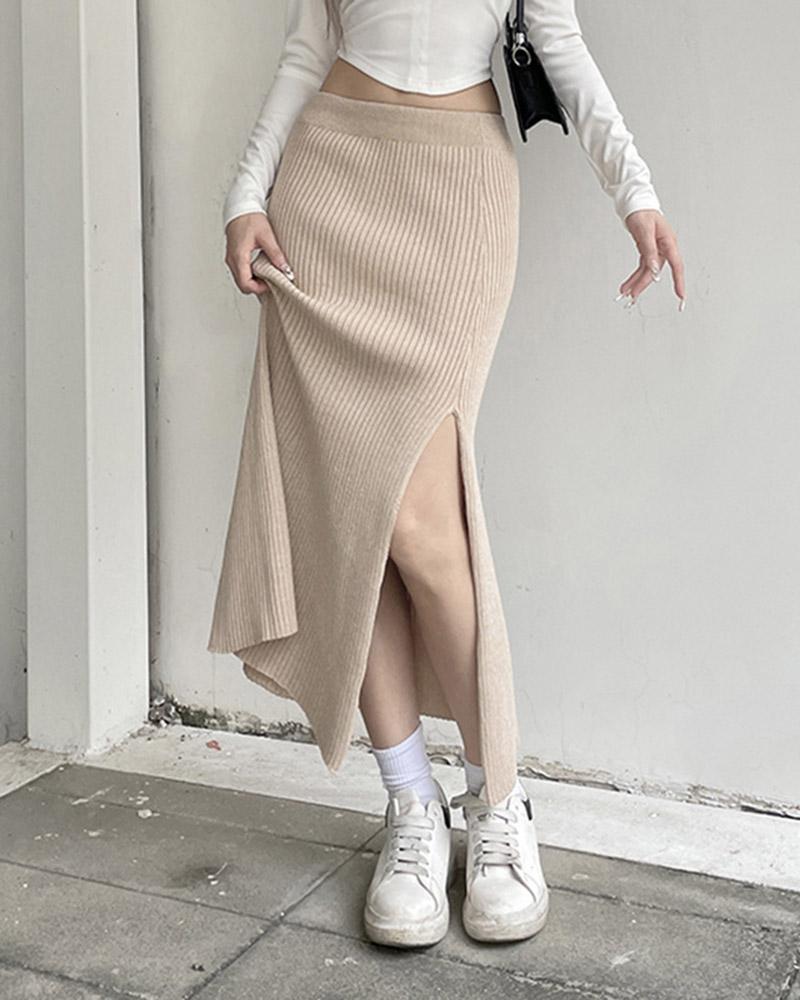 Details: Knitted skirt with side slit design