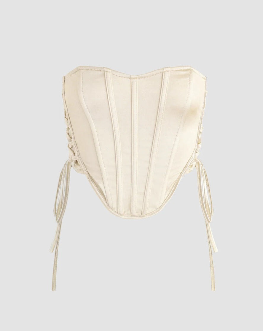 Details: Satin fabric corset top with side straps design