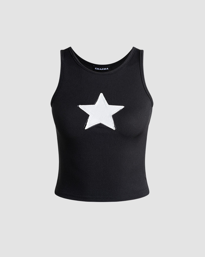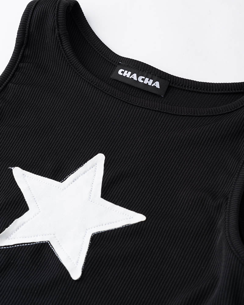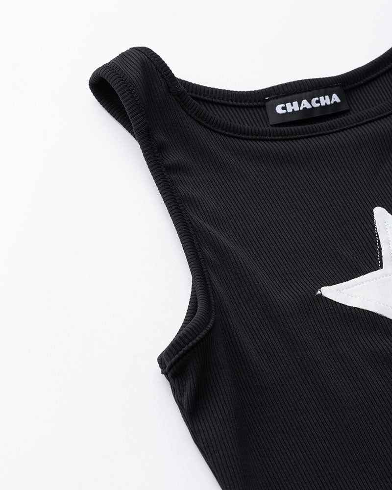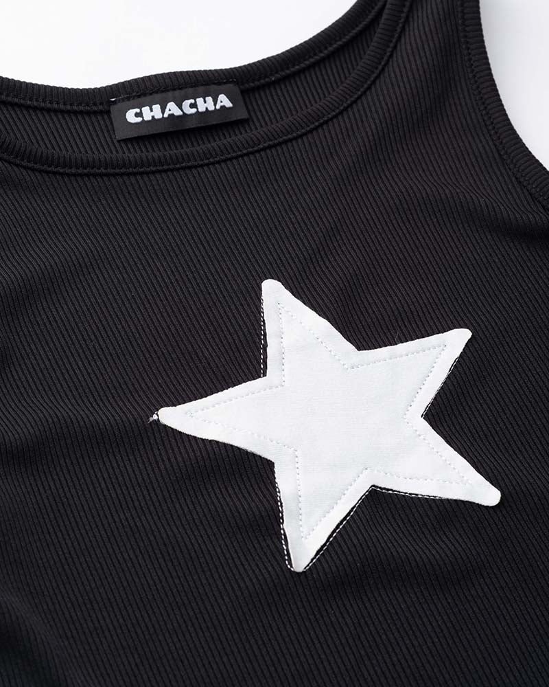 Details: Black tank top with star graphical print