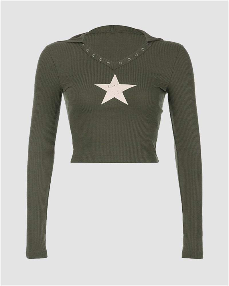 Details: Long-sleeve V-Neck top with front star design