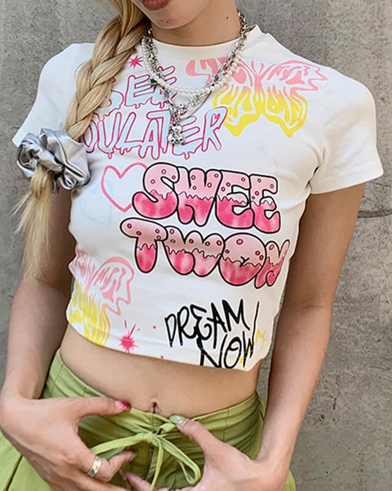 Details: Short T-shirt with Sweetwon graphical design