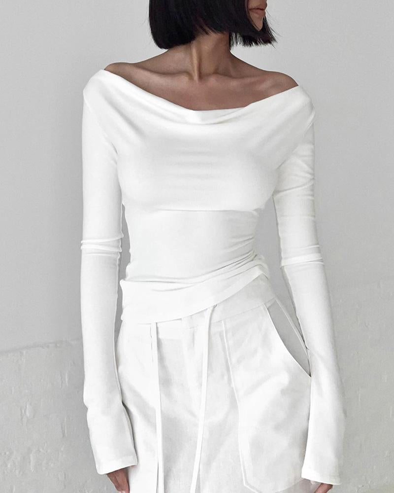 Details: Long-sleeve T-shirt with open back and low-collar design