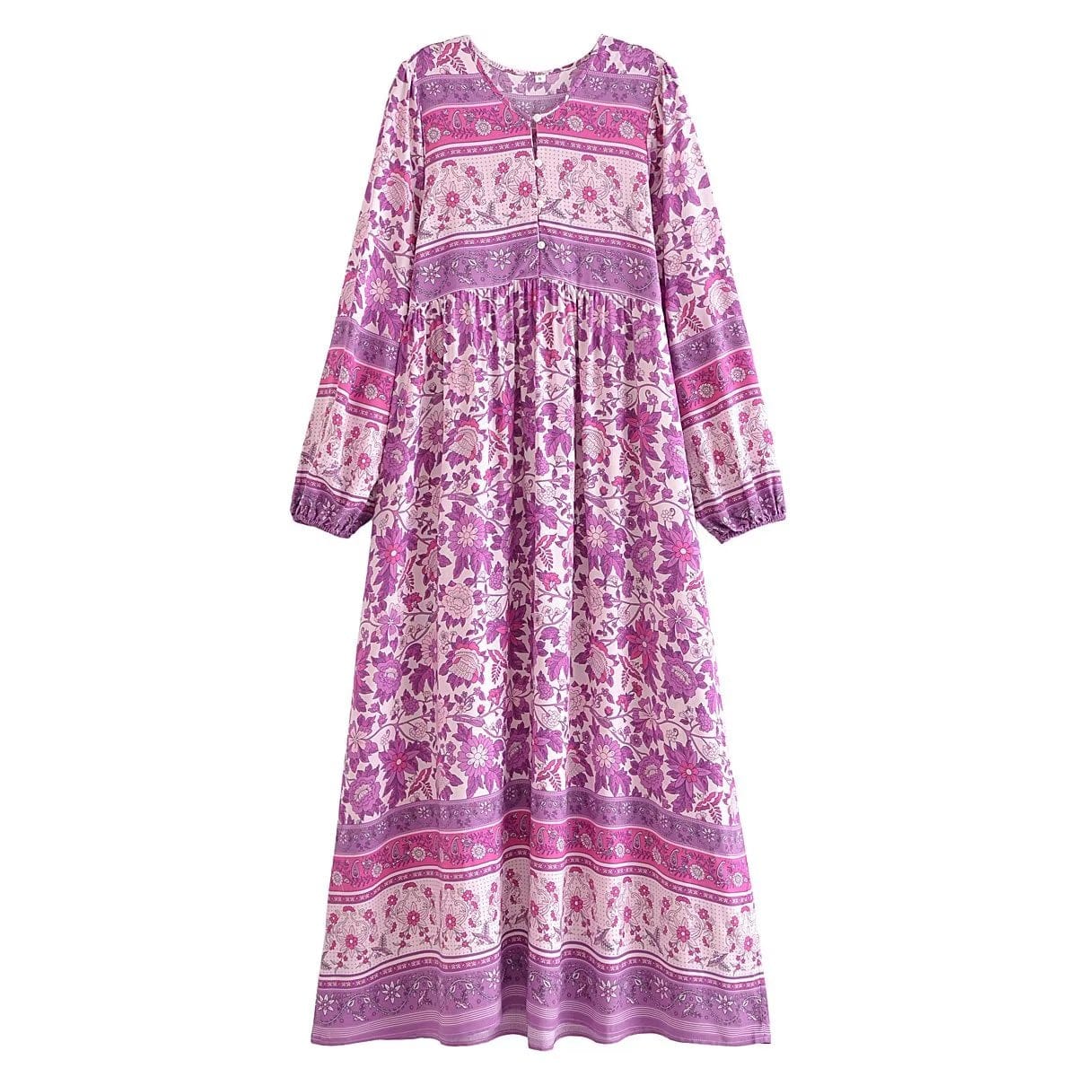 Looking for the perfect boho dress? Our Tallulah Maxi Dress is everything you've been dreaming of. With a beautiful floral print. long sleeves. and a stylish v-neck. this dress is sure to turn heads. Plus. the buttons down the front add a touch of sophistication. And the best part? It's available in pink! So what are you waiting for? Add this boho beauty to your cart today!
