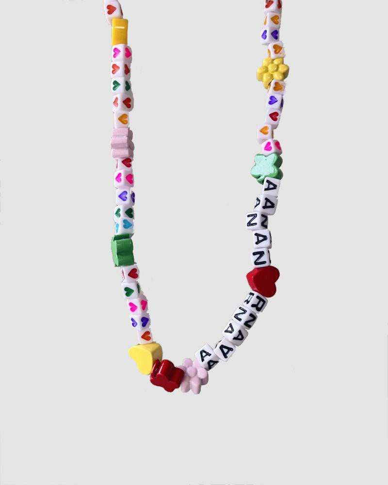 Details: Colorful letter and shape cubes beaeded necklace