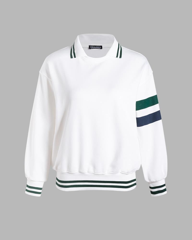 Details: Long-sleeve sweater with collar and wrists stripes design