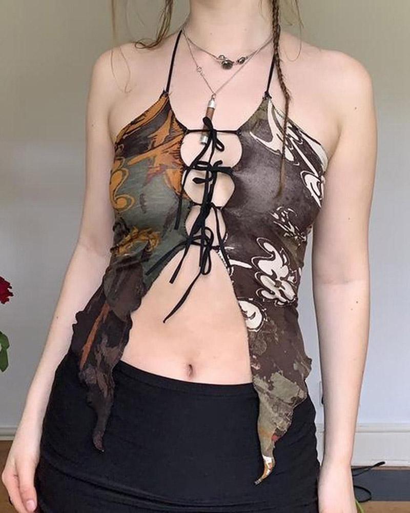 Details: Crop top with front strings design and butterfly wings details