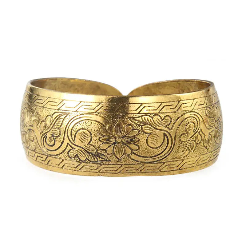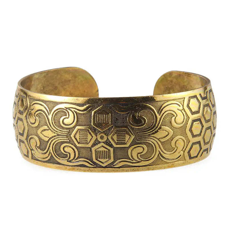 Adorn your wrist with the mystique of the Himalayas with the Tibetan Gold Boho Cuff. available in six exquisite designs. Each cuff showcases intricate patterns and symbols that reflect the rich cultural heritage. crafted to add a touch of bohemian elegance to any ensemble.