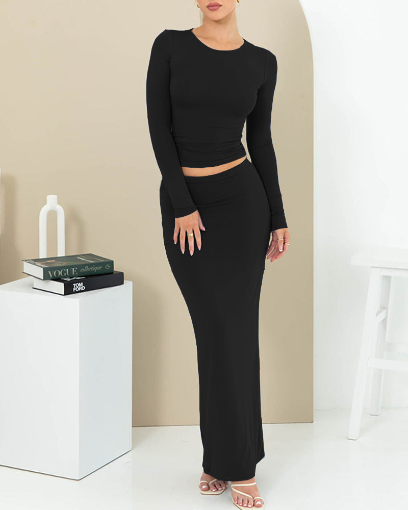 Details: Coord set with long-sleeve top and maxi skirt