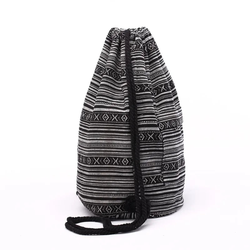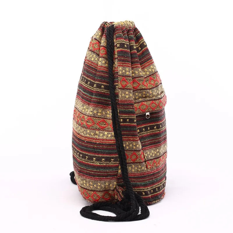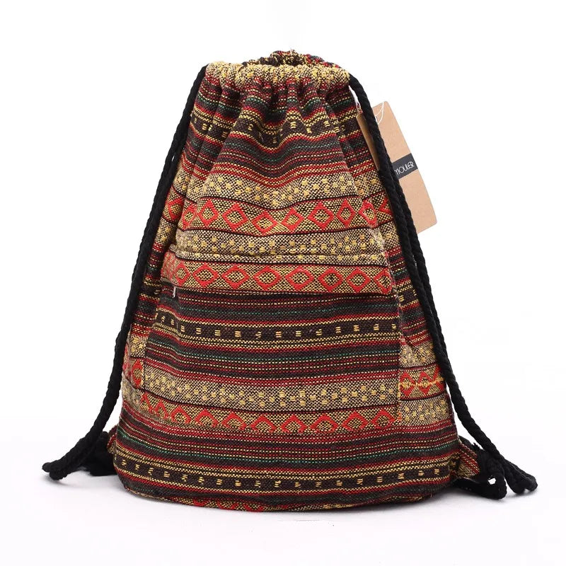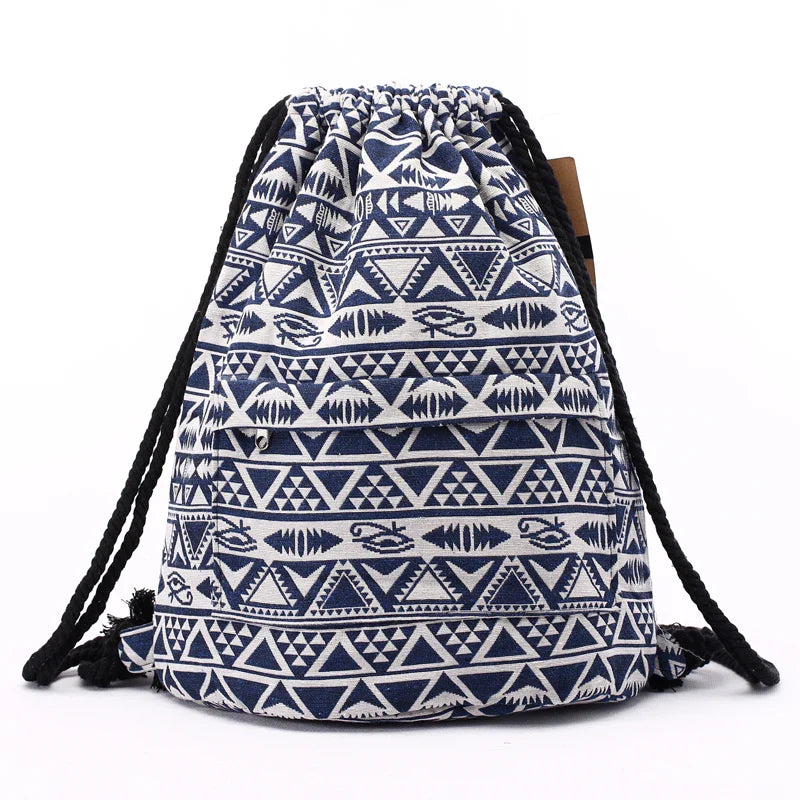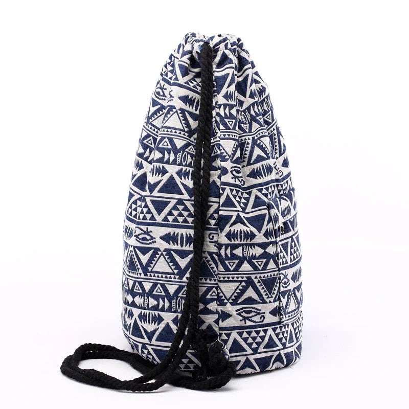 Elevate your everyday style with this Tribal Pattern Canvas Drawstring Backpack. Crafted from durable canvas and featuring a striking boho chic design. this versatile bag is perfect for school. travel. or casual outings. The drawstring closure ensures your belongings are secure while adding a trendy touch to your look.