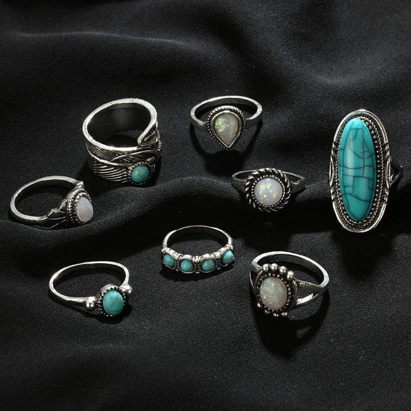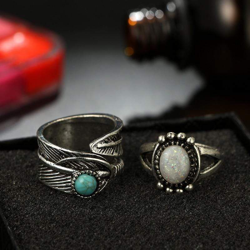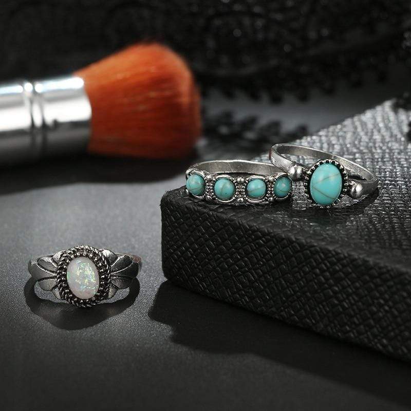 About: Keep your composure with the tranquil effects of this Turquoise Stone & Moonstone Ring Set.
