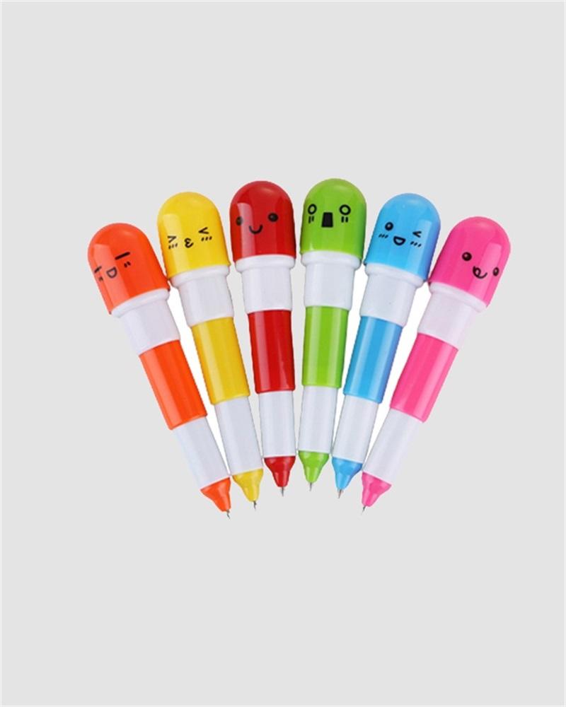 Details: Cute colored ballpen with cartoon face on pen cap