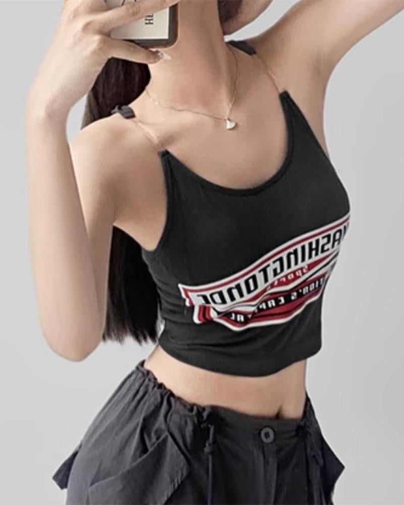 Details: Cami top with transparent shoulder straps and Washington letter design