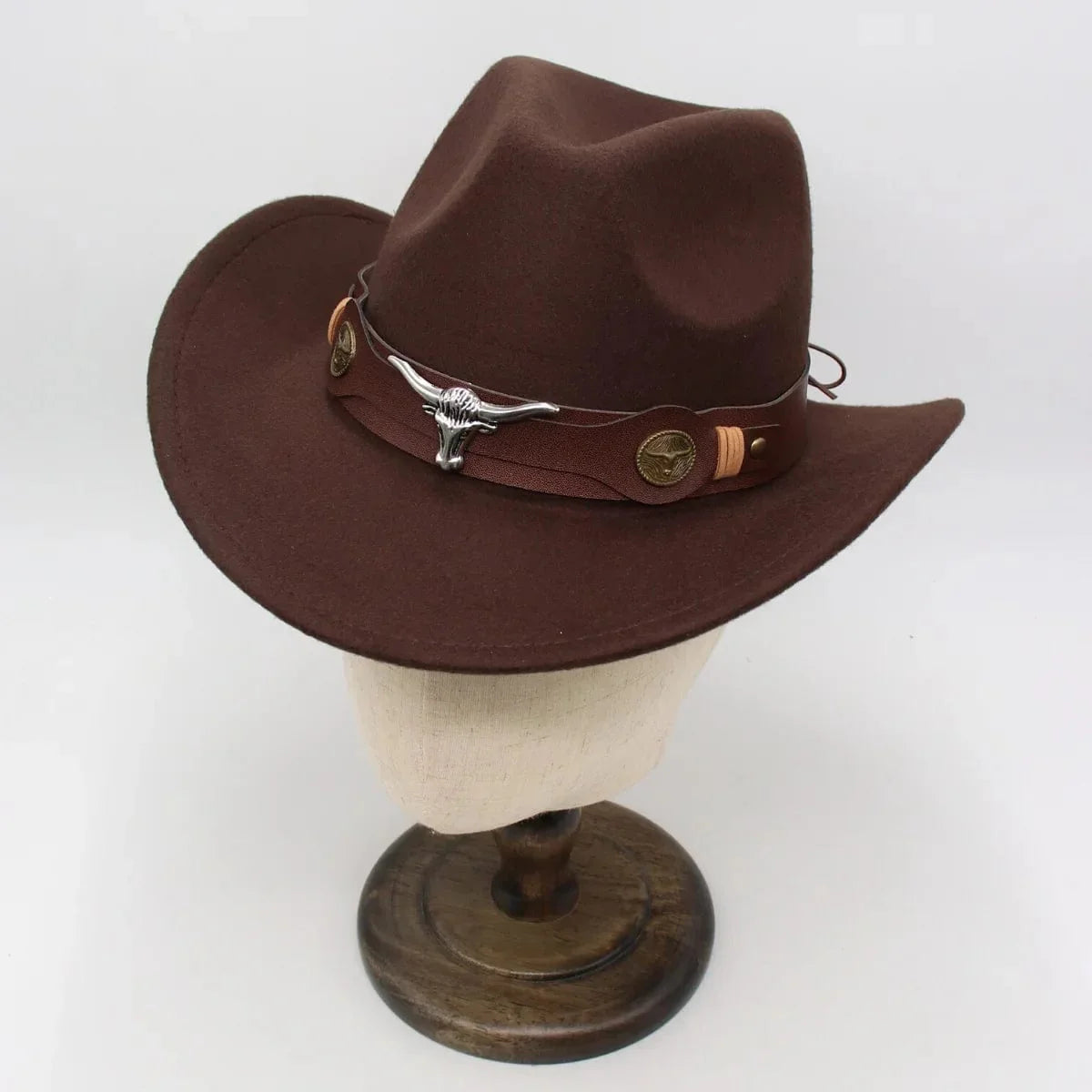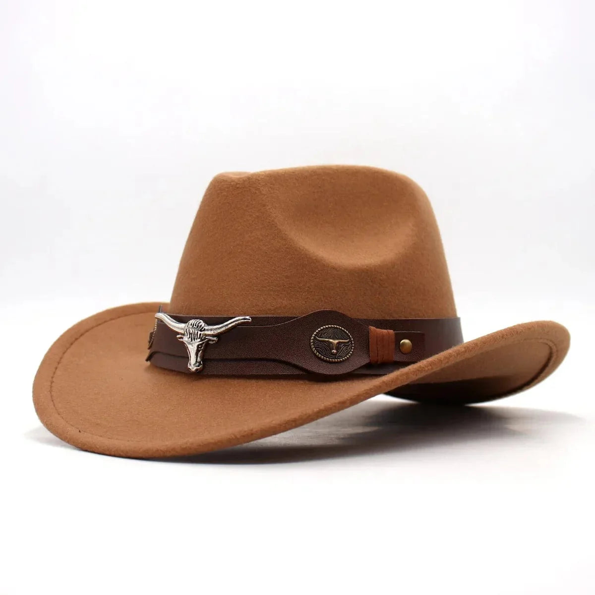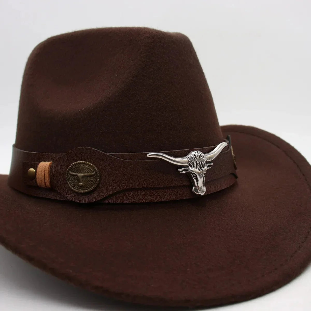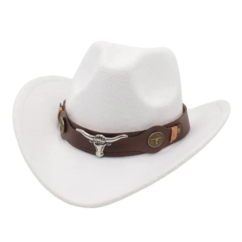 Elevate your boho chic style with our Western Style Cowboy Hat featuring a trendy leather band adorned with a bold bull detail. Crafted for both fashion and function. this hat effortlessly merges bohemian flair with classic cowboy charm. making it the perfect accessory for any free-spirited wardrobe.