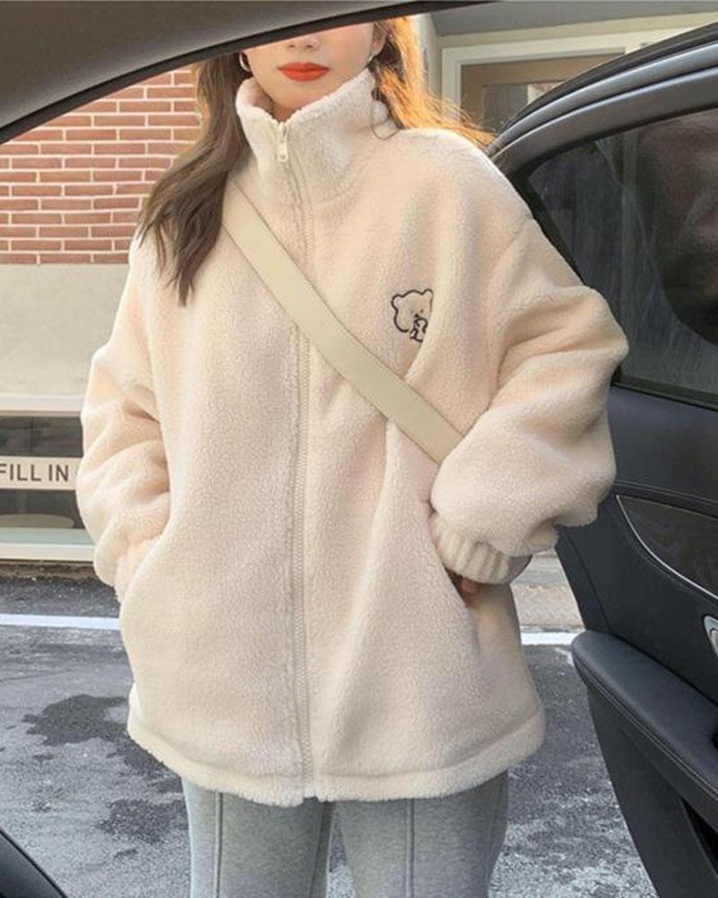Winter Bear Stand Collar Fleece Coat