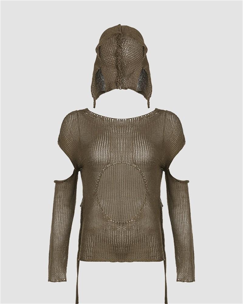 Details: Crochet hoodie top with cut-out design