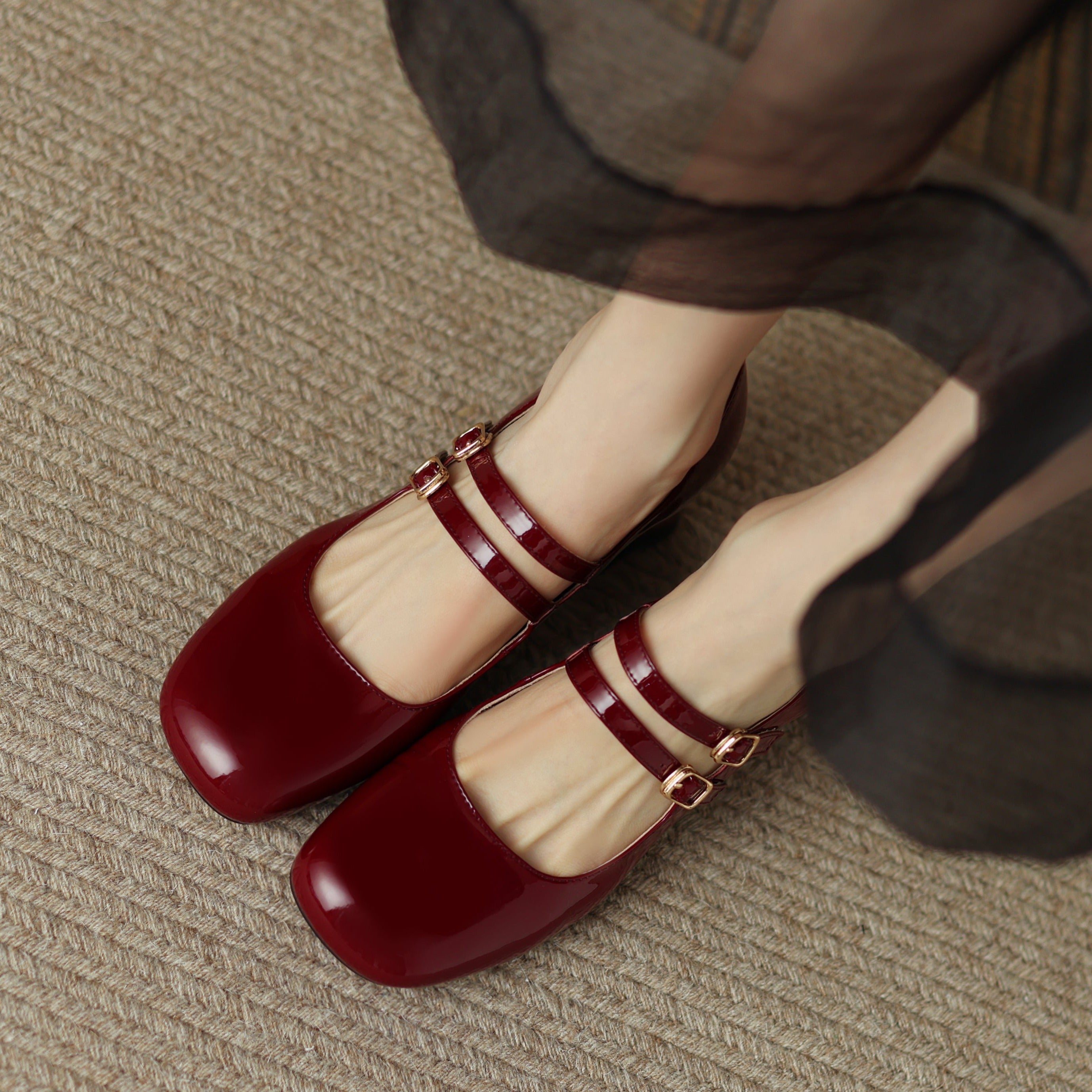 Handmade 5.5cm mid heel Shoes.Genuine Leather Women's Buckle Belt Mary Janes Shoes.Double Straps Buckle Shoes.Women's Gift