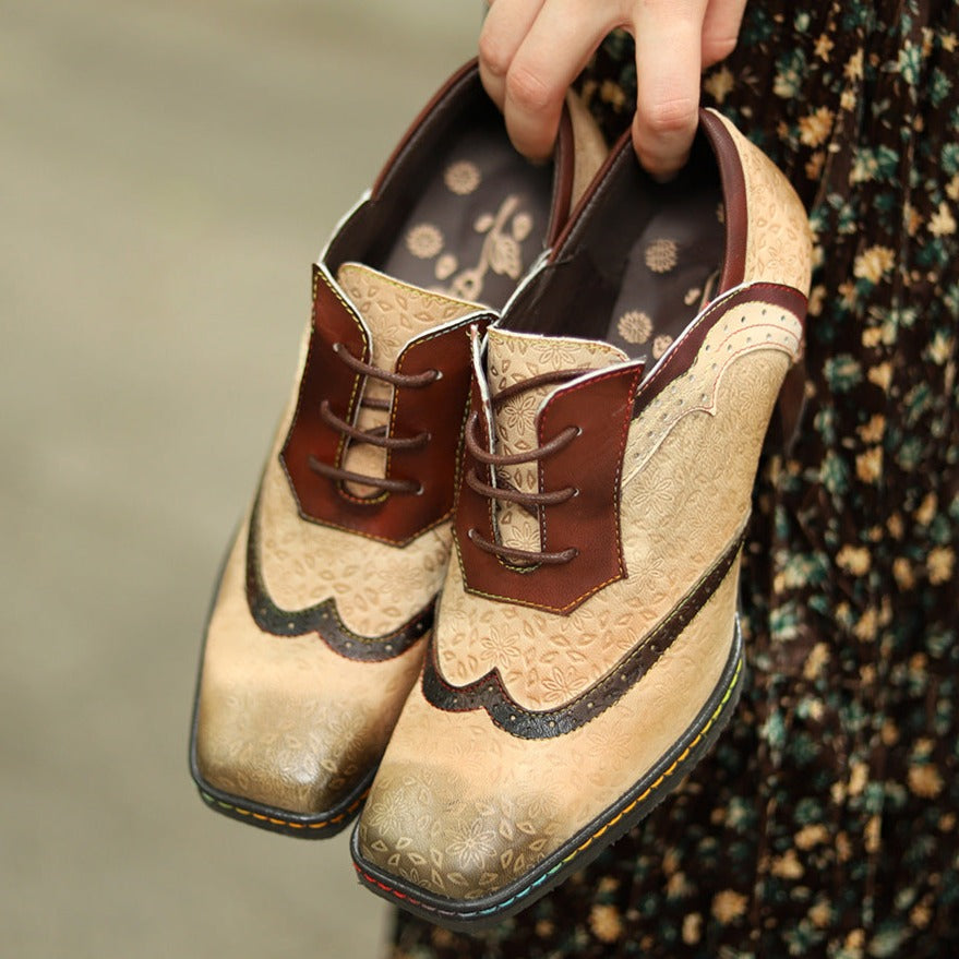 Women's Oxford Lace up Brogues Shoes Using ingenious splicing process and retro pattern. the shoes combine with ethnic elements. bright and fashional. vintage heels and elegant flower borders desigh to show your charm !!