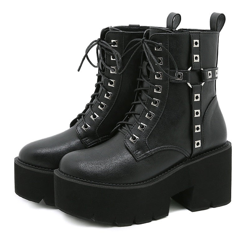 Perfect Design: Gothic bootie with block high heel. platform. non-slip bottom. shoes lace. side zip for easy wear on/ off