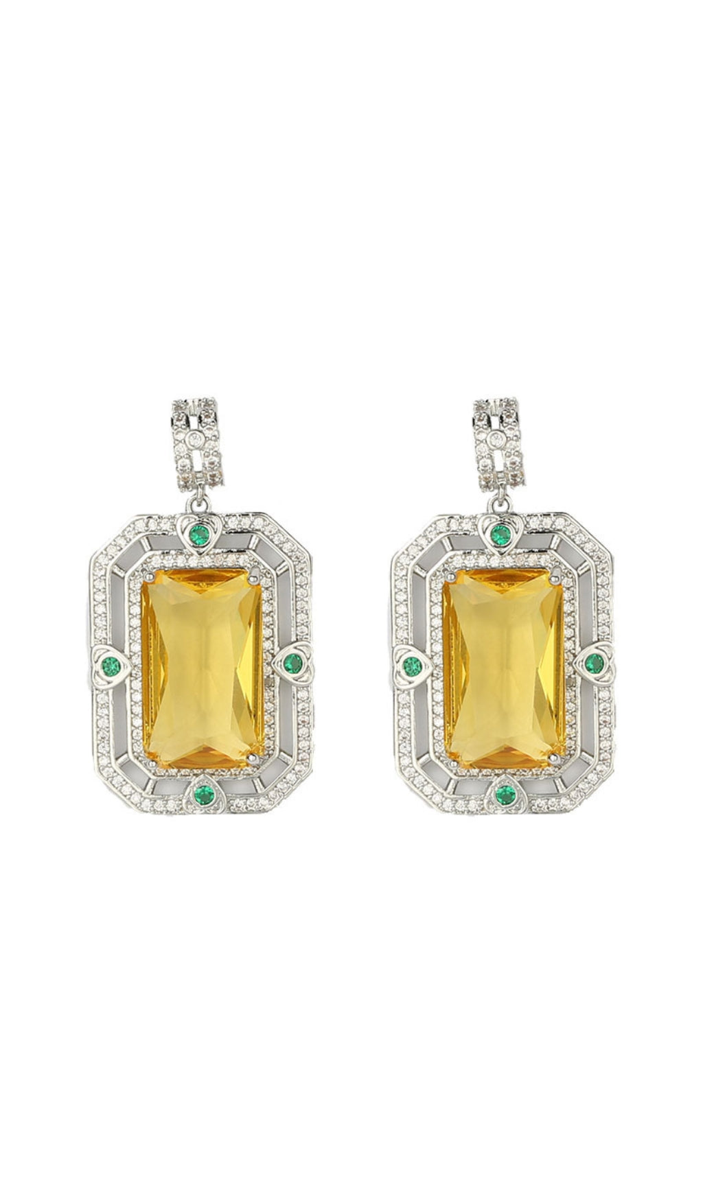 Presenting the Zircon Geometric Earrings- stunning handmade earrings featuring Zircon stones. These earrings will elevate any ensemble with their unique geometric shape and mesmerizing sparkle for a truly luxurious look.